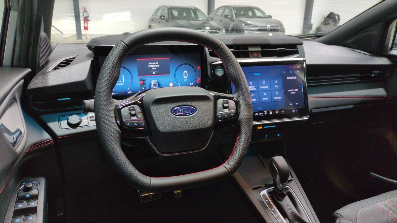 ABS - Air conditionné automatique - Airbags frontaux et latéraux conducteur et passager AV - Airbags rideaux AV - Alerte de véhicule en approche - Allumage automatique des phares - Arches de roue couleur carrosserie - Assistance à la conduite économique - Assistant de maintien dans la voie - Assistant de pré collision avec freinage post collision - Avertisseur de conduite à contre-sens - Badge ST-Line - Boîte automatique 7 vitesses - Caméra de recul - Capteur de pluie - Capteurs d'aide au stationnement AR - Ciel de toit avec pare-soleil éclairés - Combiné d'instrumentalisation numérique 12.8" - Console centrale avec accoudoir coulissant - Contrôle de la traction (TCS) - Direction assistée - Feux AR à LED - Frein à tambour AR - Freins à disques AV - Grille de calandre Active - Jantes alliage 17" ST-Line - Jupes latérales couleur carrosserie - Kit carrosserie ST-Line (bouclier AV sport et diffuseur AR) - Lecture des panneaux de signalisation - Megabox (compartiment de rangement sous le plancher du coffre) - Modem 5G - Pare-brise acoustique - Peinture métallisée Gris Solar - Planche de bord en vinyle Premium - Plaques de seuil de portes en aluminium avec logo - Pommeau de levier de vitesse en Sensico - Pommeau de levier de vitesse gainé cuir avec surpiqures rouges - Projecteurs LED avec feux de jour et commutateur de feux de route automatique - Pédalier Aluminium - Régulateur/limiteur de vitesse - Rétroviseur intérieur électrochrome - Rétroviseurs extérieurs couleur carrosserie - Rétroviseurs extérieurs électriques - chauffants avec répétiteur de clignotant et coque couleur carrosserie - Roue de secours galette - Siège Sport - Siège conducteur à réglage manuel 2 positions - Siège conducteur à réglage manuel 4 positions - Sièges AV en tissu avec surpiqûres rouges - Suspension Sport - Système d'infodivertissement SYNC4 avec écran tactile 12" et commandes vocales - 2 ports USB - navigation - Apple CarPlay et Android auto - 6 HP - Système de contrôle de la trajectoire et de la stabilité avec assistant au freinage d'urgence et aide au démarrage en côte - Système de surveillance de la pression des pneus - Sélecteur de mode de conduite - Vitres AR surteintées - Vitres électriques AV et AR - Volant en cuir Sensico perforé - - - Transport possible.