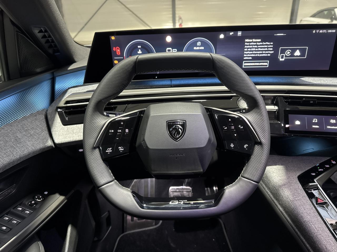 2 prises 12 V (Console centrale - coffre) - 4 poignées de maintien rétractables - 6 HP (2 tweeters et 2 woofers à l'AV et 2 larges bandes à l'AR) - 6 airbags: Frontaux conducteur et passager (passager neutralisable par clé) - latéraux conducteur et passager AV (thorax et bassin) - rideaux aux places AV et AR (tête et thorax) - ABS - Accès et démarrage mains libres Proximity 2 - Advanced Grip Control : Contrôle de traction avancé avec mode de conduite - Contrôle de traction optimisé avec 3 modes spécifiques - Aide au démarrage en pente et contrôle de descente - Air conditionné automatique tri-zone - Allumage automatique des phares - Bandeau entre les feux AR Noir laqué avec lettrage 'PEUGEOT' - Bandeau entre les projecteurs Noir laqué avec logo '5008' - Banquette 2 places au rang 3 avec dossiers rabattables 50/50 - Banquette rang 2 avec accoudoir central - Banquette rang 2 coulissante 60/40 - avec dossiers inclinables et rabattables 40/20/40 - avec fonction Easy Access aux places du rang 3 - Barres de toit longitudinales Noir Brillant - Boîte de vitesse automatique - séquentielle (6 rapports) - Calandre couleur caisse - écopes latérales Noir laqué - décor inférieur Gris Méteor - Commutation adaptative des projecteurs - Condamnation centralisée - Contrôle de la pression des pneus - Contrôle de traction - Direction assistée - Drive Assist - Régulateur de vitesse adaptatif avec fonction Stop & Go - Détection de sous-gonflage indirecte - ESP avec aide au démarrage en pente - Eclairage d'ambiance indirect - jour & nuit sur la planche de bord - les panneaux de portes AV/AR et sous l'écran panoramique 21'' - associé aux modes de conduite - personnalisable en 8 couleurs - Eclairage intérieur : Miroirs de courtoisie conducteur et passager occultables éclairés à LED - Plafonnier AV et lisseuses AR DOME à LED - Eléments de style intérieure : Planche de bord moussée avec décor tissu RIMINI chiné - décor d'alcôve en Aluminium sérigraphié - façade et aérateurs Noir laqué avec décor Gris Stène Panneaux de portes avec décor tissu RIMINI chiné - décor d'alcôve en Aluminium sérigraphié et jonc Gris Stène - accoudoirs TEP Isabella - surpiqûres Iced Clay à l'AV Console centrale avec décor tissu RIMINI chiné - façade Noir laqué et jonc Gris Stène - accoudoir tissu RIMINI chiné - Enjoliveurs de passages de roues et protections inférieures de portes Noir grainé - Essuie-vitre AV à déclenchement automatique - Feux AR 3 griffes à LED 3D - Feux diurnes 3 griffes à LED - Filet vertical de retenue de charge haute - Fixations ISOFIX et Top Tether aux places latérales rang 2 - Frein de stationnement électrique - Habitacle et ciel de pavillon Noir - Hayon motorisé avec accès mains libres - Jantes alliage 19" diamantées BREDA Noir Orbital - vernis brillant - Jupe inférieure Noir grainé - Lève-vitres AV/AR électriques et séquentiels avec antipincement - Lécheurs de vitres masqués - Monogrammes AR '5008' et 'Hybrid - Monogrammes AV : blason PEUGEOT et 5008 - Monogrammes ailes AV: 'blason PEUGEOT' - PEUGEOT i-Cockpit panoramique avec écran incurvé et flottant 21'' HD - PEUGEOT i-Connect Advanced : Navigation 3D connectée - 4 prises USB: 1 prise USB C (Data & charge) et 1 prise USB C (Charge) à l'AV - 2 prises USB C (Charge) à l'AR - PEUGEOT i-Toggles virtuels avec 10 raccourcis personnalisables - Pack 360° Vision & Drive Assist : VisioPark 360° : 4 caméras HD (avant - arrière et latérales) + Aide au stationnement avant - arrière et latérale (graphique et sonore) + Rétroviseurs extérieurs dégivrants à réglage et rabattement électriques - éclairage de seuil - indexation marche arrière avec mémorisation + Régulateur de vitesse adaptatif avec fonction Stop & Go + Détection de trafic arrière : Surveillance d'angles morts longue portée + Aide au changement de voie + Alerte de trafic arrière transversal + Commutation automatique des feux de route + Volant compact Cuir fleur lisse avec commandes intégrées Noir laqué + Volant chauffant + Alarme périmétrique - volumétrique - anti-soulèvement + Super-condamnation des ouvrants - Pack Safety Plus : Régulateur / Limiteur de vitesse - Freinage d'urgence automatique avec alerte risque de collision pilotée par caméra et radar - Alerte active de franchissement involontaire de ligne et bas côté - Reconnaissance étendue des panneaux de signalisation et préconisation de vitesse - Alerte attention conducteur - Pare-brise chauffant - Pare chocs AR avec décor Gris Meteor - Pare-brise feuilleté acoustique - Plancher de coffre modulable 2 positions - Projecteurs PEUGEOT PIXEL LED : Eclairage adaptatif - commutation automatique des feux de route - feux de route avec fonctions anti éblouissement et boost - Pédalier et repose pied aluminium - Rétroviseur intérieur électrochrome - Rétroviseurs extérieurs dégivrants avec réglage et rabattement électriques - éclairage de seuil - Sellerie tissu NEW UZIRIS embossé - accompagnement TEP Isabella - écharpe tissu RIMINI chiné - surpiqûres Iced Clay - Seuil de portes AV inox avec lettrage PEUGEOT - Siège conducteur et passager avec réglage en hauteur manuel - Siège conducteur à réglage lombaire manuel - Sièges AV chauffants - Stores pare soleil intégrés dans les portes AR - Teinte métallisée Gris Artense - Toit et becquet AR Black Diamond - Vitres AR - custodes et lunette AR teintées - Volant chauffant - Volant compact - cuir fleur lisse et perforé avec commandes intégrées Noir Laqué - décors Cast Iron - surpiqûres Iced Clay - insert Noir laqué avec badge GT' - - - Transport possible.