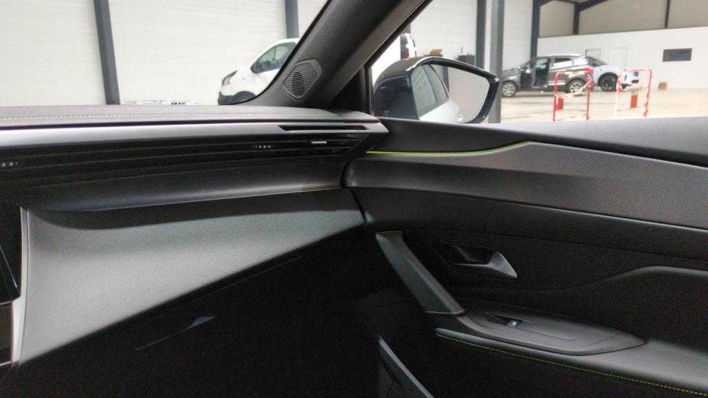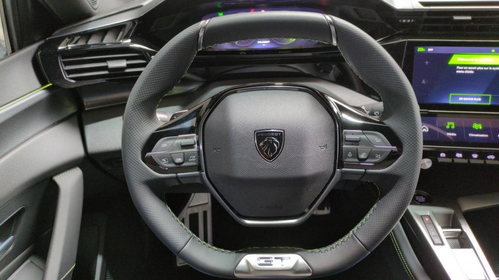 2 prises USB-C à l'AR - 2 prises USB-C à l'AV - 4 poignées de maintien - ABS - Accoudoir central AV avec compartiment de rangement - Accès et démarrage mains libres - Active Safety Brake (freinage automatique d'urgence) - Aide au stationnement AR - Aide au stationnement AV - Air conditionné automatique bi-zone - Airbags frontaux conducteur et passager adaptatifs (passager neutralisable par clé) - airbags latéraux conducteur et passager AV. airbags rideaux de tête aux places AV/AR - Alerte active de franchissement involontaire de ligne et bas côté - Alerte attention conducteur - Allumage automatique des feux de croisement - Bandeau entre feux AR Noir Brillant - Banquette AR rabattable 1/3-2/3 - Boîte de vitesse automatique (8 rapports) - Calandre AV spécifique Noir verni avec inserts chromés et écopes Noir Brillant - Ciel de pavillon noir - Commutation automatique des feux de route - Contrôle de traction - Coques de rétroviseurs extérieurs Noir Brillant - Diffuseurs d'air aux places AR - Direction assistée électrique - Driver Sport Pack - Personnalisation du combiné spécifique - Sonorité du moteur amplifiée et plus sportive (désactivable) - Décor Alu sur panneaux de porte - Détection de sous gonflage - ESP avec fonction Hill Assist (Aide au démarrage en pente) - Eclairage d'ambiance (8 couleurs) - Elargisseurs de pare chocs AV et de bas de caisse latéraux - Essuie-vitre AV à déclenchement automatique - Feux AR spécifiques avec allumage dynamique griffe à griffe - Feux diurnes à LED sous projecteurs nouvelle signature Peugeot - Fixations ISOFIX aux 2 places latérales AR (Top Tether) - Fonction Mirror Screen (Apple CarPlay/Android Auto) sans fil - Frein de stationnement électrique - Garnissage tri-matières TEP/Tissu New Belomka - Intervalle de maintenance 30 000 km ou 1 an - Jantes alliage 18" Kamakura diamantées - Jupe AR Noir Brillant avec décors chromés - Kit de dépannage de pneumatique - Lève-vitres électriques AV/ AR et séquentiels avec anti-pincement - Lécheurs de vitres Noir Brillant - Monogrammes latéraux emblème Lion - Navigation connectée avec écran central tactile 10'' et i-Toggles virtuels personnalisables - Pack Drive Assist - Régulateur de vitesse adaptatif avec fonction Stop&Go Maintient automatiquement la vitesse du véhicule à la vitesse de référence définie par le conducteur - et ajuste automatiquement la vitesse du véhicule pour garder une distance de sécurité avec le véhicule qui précède - conformément au réglage sélectionné par le conducteur. Maintient et ajuste la vitesse jusqu'à l'arrêt. Le redémarrage du véhicule est automatique si l'arrêt a été d'une durée inférieure à 3 secondes - Pack Safety Plus : Active Safety Brake piloté par caméra et radar - Pack Vision 360 and Drive Assist Plus : Peugeot i-Cockpit avec instrumentation numérique 10'' 3D personnalisable - VisioPark 360° (4 caméras) + Rear warning (surveillance d'angles morts - aide au changement de voie longue portée et alerte de trafic AR transversal) + Aide au maintien de la position dans la voie (conduite semi-autonome) + Pack inviolabilité + Clean cabin avec capteurs de particules dans l'habitacle - Pare-brise teinté feuilleté acoustique - Peugeot i-Cockpit avec instrumentation numérique 10'' 3D personnalisable - Planche de bord avec jonc transversal peint - décor Alu et surpiqûres Vert - Prise 12V à l'AV - Projecteurs Peugeot Matrix LED - Pédalier Sport et repose pied en aluminium - Reconnaissance étendue des panneaux de signalisation - Réglage lombaire du siège conducteur - Régulateur / Limiteur de vitesse - Rétroviseur intérieur photosensible - Rétroviseurs extérieurs électriques - dégivrants et rabattables électriquement - avec répétiteurs de feux clignotants à LED - Seuils de porte AV aluminium - Siège conducteur réglable en hauteur - Siège passager réglable en hauteur - Smart Multidrive: personnalisation du combiné et éclairage d'ambiance LED intérieur associés aux modes de conduite - Système Start & Stop - Sélecteur mode de conduite Eco et Sport - Teinte métallisée Blanc Okénite - Vitres AV électriques - Vitres latérales AR et lunette AR surteintées - Volant avec réglage manuel en hauteur et en profondeur - Volant cuir - - - Transport possible.