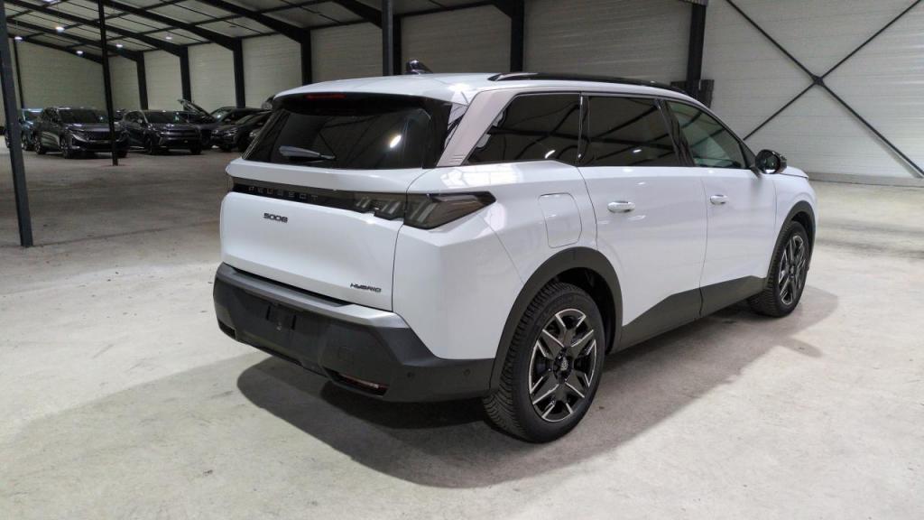 3 prises 12 V (Console centrale - rang 2 - coffre) - 4 poignées de maintien rétractables - 6 HP (2 tweeters et 2 woofers à l'AV et 2 larges bandes à l'AR) - 6 airbags: Frontaux conducteur et passager (passager neutralisable par clé) - latéraux conducteur et passager AV (thorax et bassin) - rideaux aux places AV et AR (tête et thorax) - ABS - Accès et démarrage mains libres Proximity - Advanced Grip Control - Air conditionné automatique bi-zone - Allumage automatique des phares - Attelage rotule démontable sans outil avec faisceau 13 voies - avec TSM (Trailer Sway Mitigation) système anti-lacet de la remorque - Bandeau entre les feux AR Noir laqué avec lettrage 'PEUGEOT' - Bandeau entre les projecteurs Noir laqué avec logo '5008' - Banquette 2 places au rang 3 avec dossiers rabattables 50/50 - Banquette rang 2 coulissante 60/40 - avec dossiers inclinables et rabattables 40/20/40 - avec fonction Easy Access aux places du rang 3 - Boîte de vitesse automatique - séquentielle (6 rapports) - Calandre couleur caisse - écopes latérales Noir laqué - décor inférieur Gris Méteor - Condamnation centralisée - Contrôle de la pression des pneus - Contrôle de la vitesse en descente - Contrôle de traction - Direction assistée - Détection de sous-gonflage indirecte - ESP avec aide au démarrage en pente - Eléments de style intérieure : Planche de bord moussée avec décor tissu RIMINI chiné et alcôve Graphène - façade et aérateurs Noir laqué avec décor Gris Stène + Panneaux de portes avec décor tissu RIMINI chiné - alcôve Graphène et jonc Gris Stène + Accoudoirs TEP Isabella - surpiqûres Quartz à l'AV + Console centrale avec décor tissu RIMINI chiné - façade Noir laqué et jonc Gris Stène - accoudoir tissu RIMINI chiné - Enjoliveurs de passages de roues et protections inférieures de portes Noir grainé - Essuie-vitre AV à déclenchement automatique - Feux AR 3 griffes à LED - Feux diurnes 3 griffes à LED - Fixations ISOFIX et Top Tether aux places latérales rang 2 - Frein de stationnement électrique - Habitacle et ciel de pavillon Noir - Jantes alliage 19" BREDA - Jupe inférieure Noir grainé - Lève-vitres AV/AR électriques et séquentiels avec antipincement - Lécheurs de vitres masqués - Monogrammes AR '5008' et 'Hybrid - Monogrammes AV : blason PEUGEOT et 5008 - Pack 360° Vision & Drive Assist : Visiopark 360 : 4 caméras HD (AV-AR-latérales) + Aide au stationnement AV-AR-latérale (graphique et sonore) + Alerte attention conducteur par caméra + Détection de trafic en marche AR : Surveillance d'angles morts longue portée et aide au changement de voie + Alerte de trafic AR transversal + Drive Assist : Régulateur de vitesse adaptatif avec fonction Stop & Go + Rétroviseurs extérieurs dégivrants à réglage et rabattement électriques et indexation marche AR avec mémorisation + Volant compact Cuir fleur lisse avec commandes intégrées Noir Laqué - décors Gris Stène et surpiqûres Quartz + Volant chauffant + Alarme périmétrique - volumétrique et anti-soulèvement + Super-condamnation des ouvrants - Pack Panoramic Navigation : Peugeot i-Cockpit panoramique avec écran incurvé et flottant 21" HD + Peugeot i-Toggles virtuels avec 10 raccourcis personnalisables + Peugeot i-Connect Advanced : Navigation 3D connectée + 3 prises USB + Recharge smartphone par induction - Pack Safety Plus : Freinage d'urgence automatique avec alerte risque de collision pilotée par caméra et radar + Alerte active de franchissement involontaire de ligne et bas côté + Reconnaissance étendue des panneaux de signalisation et préconisation de vitesse + Alerte attention conducteur - Pare-brise chauffant - Pare chocs AR avec décor Gris Meteor - Pare-brise feuilleté acoustique - Peugeot i-Cockpit panoramique avec écran incurvé et flottant 21" HD - PEUGEOT i-Connect : Radio DAB + Bluetooth (connexion 2 téléphones) + Mirror Screen sans fil (Apple CarPlay / Android Auto) + 1 prise USB C (Data & charge) - Projecteurs Peugeot LED Technology - Rétroviseur intérieur électrochrome - Rétroviseurs extérieurs dégivrants avec réglage et rabattement électriques - éclairage de seuil - Sellerie tissu CRISPY embossé - accompagnement TEP Isabella - écharpe tissu RIMINI chiné - surpiqûres Quartz - Siège conducteur certifié AGR : Siège conducteur électrique avec réglage longueur d'assise manuel - inclinaison d'assise électrique - réglage lombaire pneumatique - Sièges AV chauffants - Teinte métallisée Blanc Okénite - Visiopark 360 : 4 caméras HD (AV-AR-latérales) + Aide au stationnement AV-AR-latérale (graphique et sonore) - Vitres AR - custodes et lunette AR teintées - Volant compact Cuir fleur lisse avec commandes intégrées Noir Laqué - décors Gris Stène et surpiqûres Quartz - - - Transport possible.
