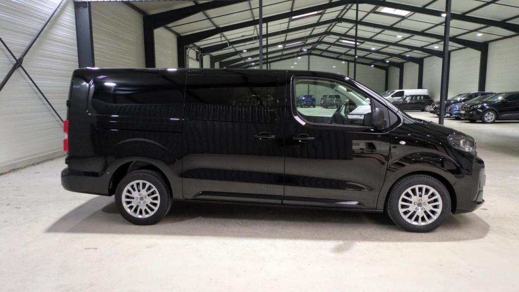 6 anneaux d'arrimage répartis uniformément sur la zone de chargement - ABS - AFU - ASR - ESP avec aide au démarrage en pente - Aide au stationnement AV-AR-latéraux - Airbags frontaux conducteur et passager - Airbags latéraux tête et thorax - Allumage automatique feux de croisement et des essuie-vitres AV - Banquette fixe 3 places en rang 2 - Climatisation automatique - Cloison pleine PVC avec vitre plexiglass - Combiné numérique LCD noir et blanc - Commandes au volant du système audio et du régulateur-limiteur de vitesse - Détection de sous-gonflage indirecte - Garnissage Tissu bi-ton noir-gris - Jantes tôle 17" Noir avec enjoliveurs - Lève vitres AV électriques impulsionnels - Pack Premium Connect : Volant Cuir chauffant + Rétroviseurs extérieurs rabattables électriquement + Climatisation automatique + Projecteurs antibrouillard AV + Accès et démarrage mains libres + Frein de stationnement électrique + Combiné numérique 10" + Mirror Screen (compatible avec Android Auto et Apple CarPlay) + Navigation 3D connectée + Jantes tôle 17" Noir avec enjoliveurs + Dynamic Surround View : Rétrovision numérique AR et latérale droite + Caméra de recul 180° + Aide au stationnement AV-AR-latéral + Système de surveillance d'angle mort + Ecran tactile 10" HD couleur + Chargeur smartphone sans fil + Prise 12V dans la zone de chargement +  Bouclier AR demi-peint + Enjoliveurs de rail de portes latérales coulissantes couleur caisse + Baguettes latérales et coques de rétroviseurs extérieurs couleur caisse - Pack Sécurité : Freinage automatique d'urgence avec alerte risque de collision + Assistance au maintien dans la voie + Commutation automatique des feux de route + Détection inattention conducteur + Reconnaissance des panneaux de vitesse et recommandation - Pare-brise feuilleté acoustique - Portes latérales coulissantes gauche-droite - Portes AR battantes tôlées 50/50 à ouverture à 180° - Prise 12 V (120 W max) dans la boîte à gants - Projecteurs halogènes avec feux diurne intégré - Radio DAB Bluetooth avec écran tactile 5'' monochrome + 4 HP (2 tweeters + 2 woofers) + 1 prise USB-A - Revêtement de sol TPO en rangs 1 et 2 - Régulateur limiteur de vitesse - Rétroviseurs extérieurs électriques et chauffants - Roue de secours homogène - Siège conducteur individuel avec appui-tête réglable en hauteur et avec accoudoir Réglage : longueur - inclinaison - réhausse et rabattable - Sécurité enfants mécanique - Siège passager individuel avec accoudoir (configuration 2 places AV) - Teinte métallisée Noir Perla Nera - Vitres latérales fixes en rang 2 - Vitres latérales fixes surteintées en rang 2 - Volant réglable en hauteur et en profondeur - - - Transport possible.