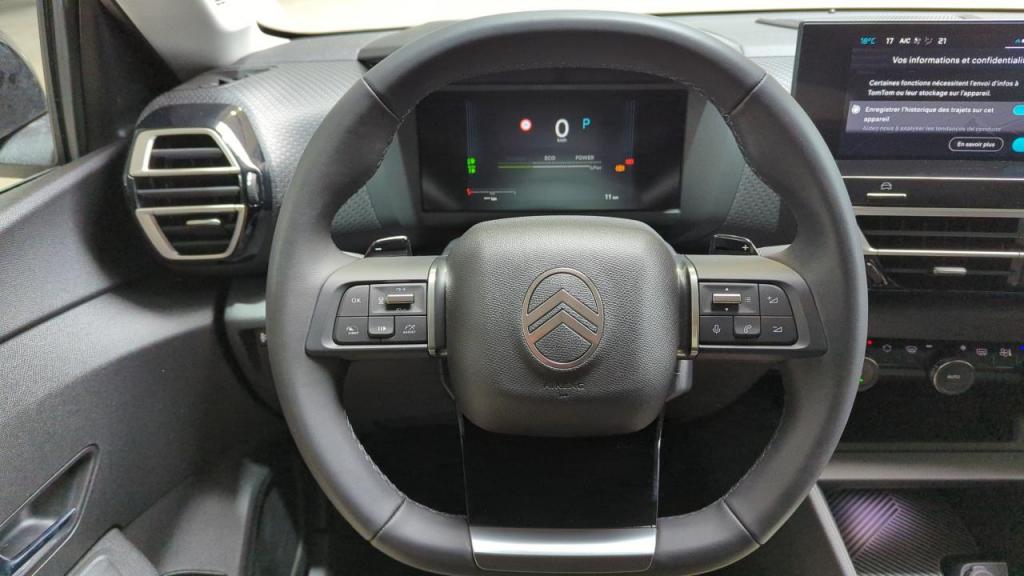 2 prises USB au rang 1 (1 type C + 1 type A) + 1 prise USB en rang 2 (type A) - ABS + AFU + ESP + REF - Accès et démarrage mains libres Proximity - Aérateurs centraux en rang 2 - Aide au démarrage en pente - Aide au stationnement AR - Aide au stationnement AV et latéral - Airbags frontaux - latéraux AV et rideaux - Banquette AR fractionnable 2/3 - 1/3 - Boîte automatique 6 rapports - Caméra de recul - Climatisation automatique bizone - Color Clips Gold Satin - Combiné numérique couleur 7" TFT - Console centrale haute avec rangements et accoudoir - Coques de rétroviseurs extérieurs Noir Brillant - Détection de sous-gonflage - Direction assistée - Eclairage d'accompagnement sous les rétroviseurs extérieurs - Ecran central 10" tactile: - Système audio numérique (DAB) 6 HPs - Apple CarPlay et Android Auto sans fil - Reconnaissance vocale - Kit mains libres Bluetooth - Boîtier télématique : Appel d'urgence et Citroën Assistance - Elargisseurs d'aile et bas de caisse Noir Mat - Essuie-vitre AV automatique - Feux AR à LED avec signature lumineuse - Feux diurnes à LED avec signature lumineuse - Frein de stationnement électrique automatique - Garnissage Tissu Hello Noir/Toile enduite Gris Ambiance Urban Grey + Sièges Advanced Comfort - Jantes alliage 18" AMBER Diamantées - Kit de dépannage provisoire de pneumatiques - Lécheurs de vitres latérales Noir - Lève-vitres AV et AR électriques et séquentiels - Navigation 3D Connectée sur écran central 10'' tactile - Système de navigation TomTom - Reconnaissance vocale avec langage naturel - Interface personnalisable - Pack Drive Assist - Active Safety Brake 2.0 (fonctionne à l'aide d'un radar de 7 à 140 km/h - y compris de nuit) - Commutation automatique des feux de route - Reconnaissance étendue des panneaux et recommandation de vitesse - Régulateur de vitesse adaptatif avec fonction Stop & Go (dispositif ajustant la vitesse en fonction du véhicule précédent) - Système de surveillance d'angle mort - Pack Safety - Active Safety Brake (fonctionne de 30 à 80 km/h et détecte les piétons et les cyclistes) - Alerte active de Franchissement Involontaire de Ligne - Alerte Attention Conducteur - Alerte Risque Collision - Allumage automatique des feux de croisement - Coffee Break Alert - Reconnaissance des panneaux de vitesse et recommandation - Régulateur-limiteur de vitesse - Témoin de non-bouclage des ceintures de sécurité conducteur et passagers - Poche aumônière au dos des sièges AV - Poignées de portes extérieures couleur caisse - Prédisposition pour roue de secours - Projecteurs LED - Rétroviseurs extérieurs électriques et dégivrants - Rétroviseurs extérieurs rabattables électriquement - Sabot AV Silver Chrome Satin - Siège conducteur avec réglage lombaire - Sièges conducteur et passager réglables en hauteur - Suspension Citroën Advanced Comfort - TCS (Contrôle de la traction) - Teinte de caisse métallisée Gris Mercury - Top Rear Vision de la caméra de recul - Volant cuir pleine fleur - Volant réglable en hauteur et en profondeur - - - Transport possible.