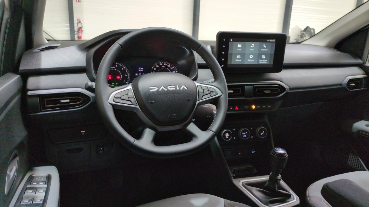 3 appuis-têtes AR - Aide au parking AR - Airbag frontal conducteur et passager - Airbag frontal passager désactivable - Airbag latéral AV : thorax + rideau - Alerte franchissement de ligne et assistant maintien dans la voie - Allumage des feux et essuie-glace automatiques - Assistance au freinage d'urgence + allumage des warnings - Banquette AR avec dossier rabattable en portefeuille 1/3 -2/3 - Barres de toit modulables - Boîte de vitesse manuelle - Caméra de recul - Carte mains libres - Climatisation automatique - Cluster TFT - Condamnation centralisée des portes - Condamnation des ouvrants en roulant - Console basse + rangement ouvert - Détection de pression des pneus - Direction assistée - Eclairage du coffre - Eclairage plafonnier AR - Enjoliveurs bas de porte coffre - ESP - Extended Grip - Feux anti brouillard - Feux AR avec signature lumineuse Y - Feux de jour à LED - Filtre à particules - Jantes alliage 16'' MAHALIA diamantée noir avec cabochon Brun Cuivré - Lève-vitre conducteur électrique impulsionnel - Lève-vitres AR électriques - Media display : Ecran 8'' + Réplication smartphone + 4 haut-parleurs + 1 port USB - Mode éco - Ordinateur de bord - Peinture métallisée Gris Urbain - Prédisposition Ethylotest - Prise accessoire en rang 3 - Rappel de bouclage de ceintures - Reconnaissance des panneaux de signalisation avec alerte de survitesse - Régulateur de vitesse - Rétroviseur intérieur jour/nuit - Rétroviseurs extérieurs réglables électriquement + dégivrants - Roue de secours - Sellerie spécifique Extreme avec surpiqûres Brun Cuivré - Siège conducteur réglable en hauteur + accoudoir AV - Sièges AV chauffants - Signature lumineuse DACIA en Y à LED - Stripping Extreme - Système anti-blocage des roues (ABS) - Système de contrôle de traction (TCS) - Système de fixation Isofix - Système de freinage d'urgence avancé (pieton - deux-roues et intersection) - Système de surveillance de l'attention du conducteur - Vitres - portes AR - custode et lunette AR surteintées - Volant réglable en hauteur et en profondeur - Volant Soft Feel TEP - - - Transport possible.
