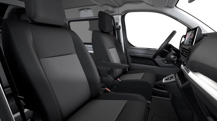 ABS - AFU - ASR et ESP avec aide au démarrage en pente - Aide au stationnement AV-AR-latéraux - Airbags frontaux conducteur et passager - Airbags latéraux AV tête-thorax en rang 1 et airbags rideau pour tête - Allumage automatique des feux de croisement et des essuie-vitres AV - Anneaux d'arrimage 6 répartis uniformément sur la zone de chargement - Climatisation automatique - Cloison pleine PVC avec vitre plexiglass - Commandes au volant du système audio et du régulateur-limiteur de vitesse - Contrôle de la pression des pneus - Direction assistée - Détection de sous-gonflage indirecte - Kit de regonflage pneumatiques (Compresseur 12V + Cartouche de produit de colmatage) - Lève-vitres AV électriques impulsionnels - Pack Premium Connect : Accès et démarrage mains libres + Chargeur smartphone sans fil + Climatisation automatique + Combiné numérique 10" + Dynamic Surround View : Rétrovision numérique AR et latérale droite + Caméra de recul 180° + Aide au stationnement AV et latéral + Système de surveillance d'angle mort + Ecran tactile 10" HD couleur + Frein de stationnement électrique + Jantes tôle 17" avec enjoliveurs + Mirror Screen compatible Android Auto et Apple CarPlay + Navigation 3D connectée + Prise 12v dans la zone de chargement + Projecteurs antibrouillard AV + Rétroviseurs ext rabattables électriquement + Volant Cuir chauffant + Pack Look Extérieur : Boucliers AR demi-peint + Enjoliveurs de rail de porte latérale coulissante + Poignées de portes extérieures couleur caisse - Pack Sécurité : Freinage automatique d'urgence avec alerte risque de collision + Assistance au maintien dans la voie + Commutation automatique des feux de route + Détection inattention conducteur + Reconnaissance des panneaux de vitesse et recommandation - Plancher bois anti-dérapant 9 mm avec baguette aluminium - Portes latérales coulissantes gauche/droite - Portes AR battantes 50/50 tôlées à ouverture à 180° - Prise 12V (1200 W max) dans la boîte à gants - Projecteurs halogène (H15) avec feux diurnes intégrés - Revêtement de sol TPO en rangs 1 et 2 - Régulateur - limiteur de vitesse - Rétroviseurs extérieurs électriques et dégivrants - Sellerie Tissu bi-ton noir-gris - Sécurité enfants mécanique - Siège conducteur individuel avec appui-tête réglable en hauteur et avec accoudoir Réglage : longueur - inclinaison - réhausse et rabattable - Siège passager individuel avec accoudoir (configuration 2 places AV) - Teinte de caisse métallisée Gris Acier - Vitres latérales fixes en rang 2 - Volant réglable en hauteur et en profondeur - - - Transport possible.