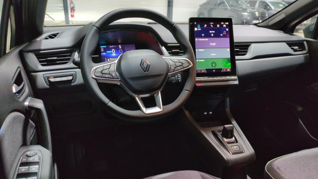 Aide au démarrage en côte - Aide au freinage d'urgence (A.F.U.) - Aide au parking AR - Airbag passager déconnectable - Airbags frontaux - Airbags latéraux AV - Alerte distance de sécurité - Information dans tableau de bord - Alerte détection de fatigue - Alerte oubli des ceintures de sécurité aux 5 places - Alerte sortie de voie - Allumage automatique des essuie-glaces - Antenne requin - Antiblocage des roues ABS - Appuie-têtes AR - Banquette AR coulissante et rabattable 1/3 - 2/3 - Boîte de vitesse hybride multimode 6 rapports - Caméra de recul - Carte Renault "Mains libres" - Ceinture centrale AR 3 points - Ceintures de sécurité AV réglables en hauteur - Climatisation automatique - Condamnation centralisée des portes avec télécommande et condamnation des portes en roulant - Console centrale de rangement avec accoudoir - Contrôle de la traction (TCS) - Contrôle dynamique de trajectoire ESC - Coques de rétroviseurs noir - Direction assistée - Eclairage AV et AR Full LED Pure Vision - Feux AR LED avec signature en forme de ''C'' et animation 3D - Feux de stop à LED - Frein de parking électrique avec fonction Auto-Hold - Harmonie noire - Hayon AR manuel - Indicateur de changement de vitesse - Jantes Aluminium 18'' - Liseuses AV à LED - Lunette AR chauffante - Lève-vitres électriques et impulsionnels - Mirror Screen compatible Androïd Auto et Apple CarPlay - Bluetooth - Replication smartphone sans fil - Peinture bi-ton Bleu Iron/Toit Noir Etoilé - Plancher de coffre mobile - Poignées de portes ton caisse - Reconnaissance des panneaux de signalisation - Renault Multi-sense - Régulateur de vitesse adaptatif - Répétiteurs latéraux de changement de direction - Rétroviseur intérieur électrochrome - Roue de secours temporaire - Sellerie Techno - Sièges AV réglables en hauteur - Système ISOFIX (i-Size) aux places latérales AR et passager AV - Système de détection de la pression des pneumatiques - Vitres AR surteintées - Volant textile enduit grainé - - - Transport possible.