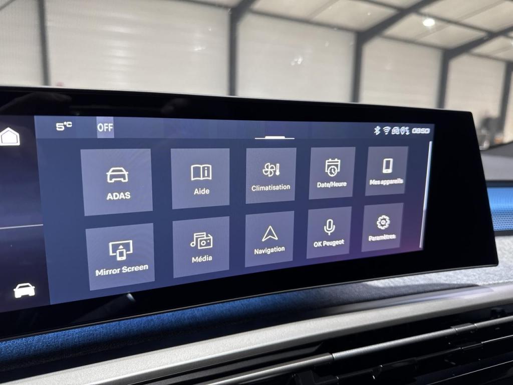 2 prises 12 V (Console centrale - coffre) - 4 poignées de maintien rétractables - 6 HP (2 tweeters et 2 woofers à l'AV et 2 larges bandes à l'AR) - 6 airbags: Frontaux conducteur et passager (passager neutralisable par clé) - latéraux conducteur et passager AV (thorax et bassin) - rideaux aux places AV et AR (tête et thorax) - ABS - Accès et démarrage mains libres Proximity 2 - Advanced Grip Control : Contrôle de traction avancé avec mode de conduite - Contrôle de traction optimisé avec 3 modes spécifiques - Aide au démarrage en pente et contrôle de descente - Air conditionné automatique tri-zone - Allumage automatique des phares - Bandeau entre les feux AR Noir laqué avec lettrage 'PEUGEOT' - Bandeau entre les projecteurs Noir laqué avec logo '5008' - Banquette 2 places au rang 3 avec dossiers rabattables 50/50 - Banquette rang 2 avec accoudoir central - Banquette rang 2 coulissante 60/40 - avec dossiers inclinables et rabattables 40/20/40 - avec fonction Easy Access aux places du rang 3 - Barres de toit longitudinales Noir Brillant - Boîte de vitesse automatique - séquentielle (6 rapports) - Calandre couleur caisse - écopes latérales Noir laqué - décor inférieur Gris Méteor - Commutation adaptative des projecteurs - Condamnation centralisée - Contrôle de la pression des pneus - Contrôle de traction - Direction assistée - Drive Assist - Régulateur de vitesse adaptatif avec fonction Stop & Go - Détection de sous-gonflage indirecte - ESP avec aide au démarrage en pente - Eclairage d'ambiance indirect - jour & nuit sur la planche de bord - les panneaux de portes AV/AR et sous l'écran panoramique 21'' - associé aux modes de conduite - personnalisable en 8 couleurs - Eclairage intérieur : Miroirs de courtoisie conducteur et passager occultables éclairés à LED - Plafonnier AV et lisseuses AR DOME à LED - Eléments de style intérieure : Planche de bord moussée avec décor tissu RIMINI chiné - décor d'alcôve en Aluminium sérigraphié - façade et aérateurs Noir laqué avec décor Gris Stène Panneaux de portes avec décor tissu RIMINI chiné - décor d'alcôve en Aluminium sérigraphié et jonc Gris Stène - accoudoirs TEP Isabella - surpiqûres Iced Clay à l'AV Console centrale avec décor tissu RIMINI chiné - façade Noir laqué et jonc Gris Stène - accoudoir tissu RIMINI chiné - Enjoliveurs de passages de roues et protections inférieures de portes Noir grainé - Essuie-vitre AV à déclenchement automatique - Feux AR 3 griffes à LED 3D - Feux diurnes 3 griffes à LED - Filet vertical de retenue de charge haute - Fixations ISOFIX et Top Tether aux places latérales rang 2 - Frein de stationnement électrique - Habitacle et ciel de pavillon Noir - Hayon motorisé avec accès mains libres - Jantes alliage 19" diamantées BREDA Noir Orbital - vernis brillant - Jupe inférieure Noir grainé - Lève-vitres AV/AR électriques et séquentiels avec antipincement - Lécheurs de vitres masqués - Monogrammes AR '5008' et 'Hybrid - Monogrammes AV : blason PEUGEOT et 5008 - Monogrammes ailes AV: 'blason PEUGEOT' - PEUGEOT i-Cockpit panoramique avec écran incurvé et flottant 21'' HD - PEUGEOT i-Connect Advanced : Navigation 3D connectée - 4 prises USB: 1 prise USB C (Data & charge) et 1 prise USB C (Charge) à l'AV - 2 prises USB C (Charge) à l'AR - PEUGEOT i-Toggles virtuels avec 10 raccourcis personnalisables - Pack 360° Vision & Drive Assist : VisioPark 360° : 4 caméras HD (avant - arrière et latérales) + Aide au stationnement avant - arrière et latérale (graphique et sonore) + Rétroviseurs extérieurs dégivrants à réglage et rabattement électriques - éclairage de seuil - indexation marche arrière avec mémorisation + Régulateur de vitesse adaptatif avec fonction Stop & Go + Détection de trafic arrière : Surveillance d'angles morts longue portée + Aide au changement de voie + Alerte de trafic arrière transversal + Commutation automatique des feux de route + Volant compact Cuir fleur lisse avec commandes intégrées Noir laqué + Volant chauffant + Alarme périmétrique - volumétrique - anti-soulèvement + Super-condamnation des ouvrants - Pack Safety Plus : Régulateur / Limiteur de vitesse - Freinage d'urgence automatique avec alerte risque de collision pilotée par caméra et radar - Alerte active de franchissement involontaire de ligne et bas côté - Reconnaissance étendue des panneaux de signalisation et préconisation de vitesse - Alerte attention conducteur - Pare-brise chauffant - Pare chocs AR avec décor Gris Meteor - Pare-brise feuilleté acoustique - Plancher de coffre modulable 2 positions - Projecteurs PEUGEOT PIXEL LED : Eclairage adaptatif - commutation automatique des feux de route - feux de route avec fonctions anti éblouissement et boost - Pédalier et repose pied aluminium - Rétroviseur intérieur électrochrome - Rétroviseurs extérieurs dégivrants avec réglage et rabattement électriques - éclairage de seuil - Sellerie tissu NEW UZIRIS embossé - accompagnement TEP Isabella - écharpe tissu RIMINI chiné - surpiqûres Iced Clay - Seuil de portes AV inox avec lettrage PEUGEOT - Siège conducteur et passager avec réglage en hauteur manuel - Siège conducteur à réglage lombaire manuel - Sièges AV chauffants - Stores pare soleil intégrés dans les portes AR - Teinte métallisée Gris Artense - Toit et becquet AR Black Diamond - Vitres AR - custodes et lunette AR teintées - Volant chauffant - Volant compact - cuir fleur lisse et perforé avec commandes intégrées Noir Laqué - décors Cast Iron - surpiqûres Iced Clay - insert Noir laqué avec badge GT' - - - Transport possible.